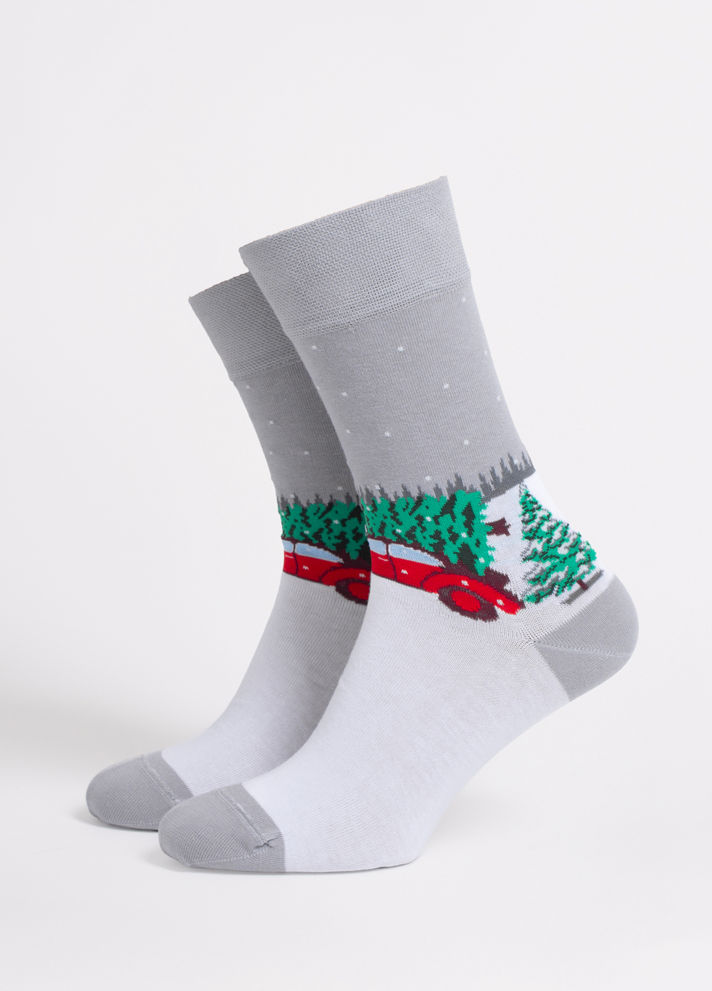 Чоловічі новорічні шкарпетки MS3 NEW YEAR 2602 silver (сірий)