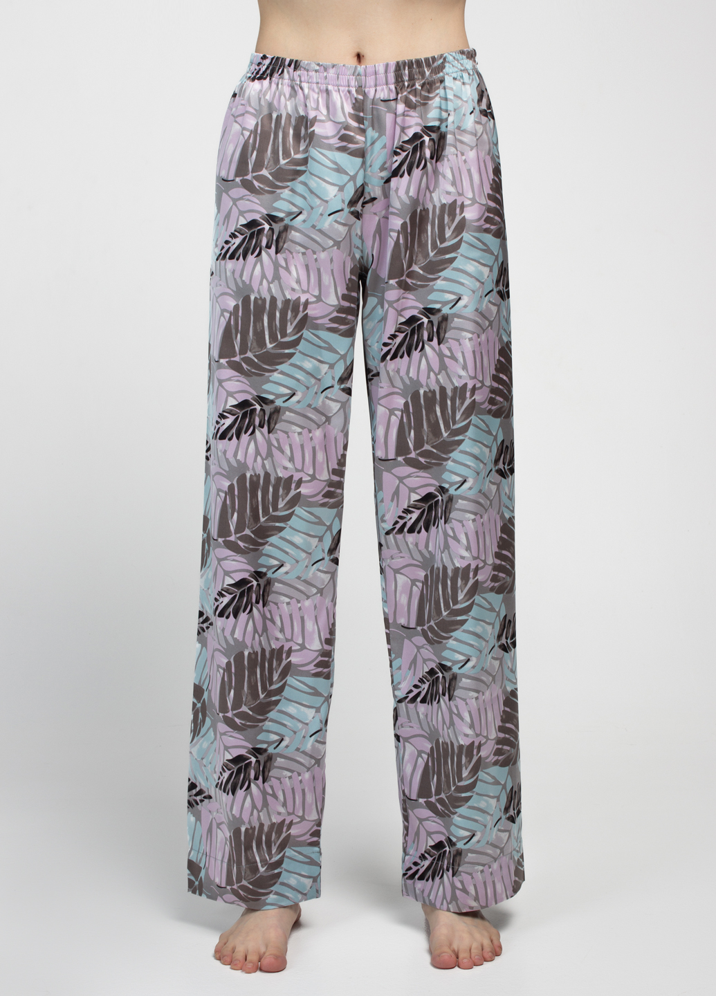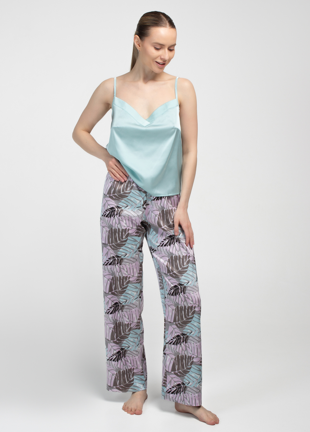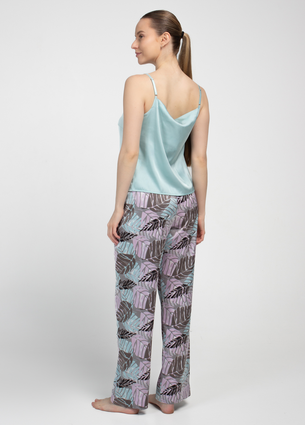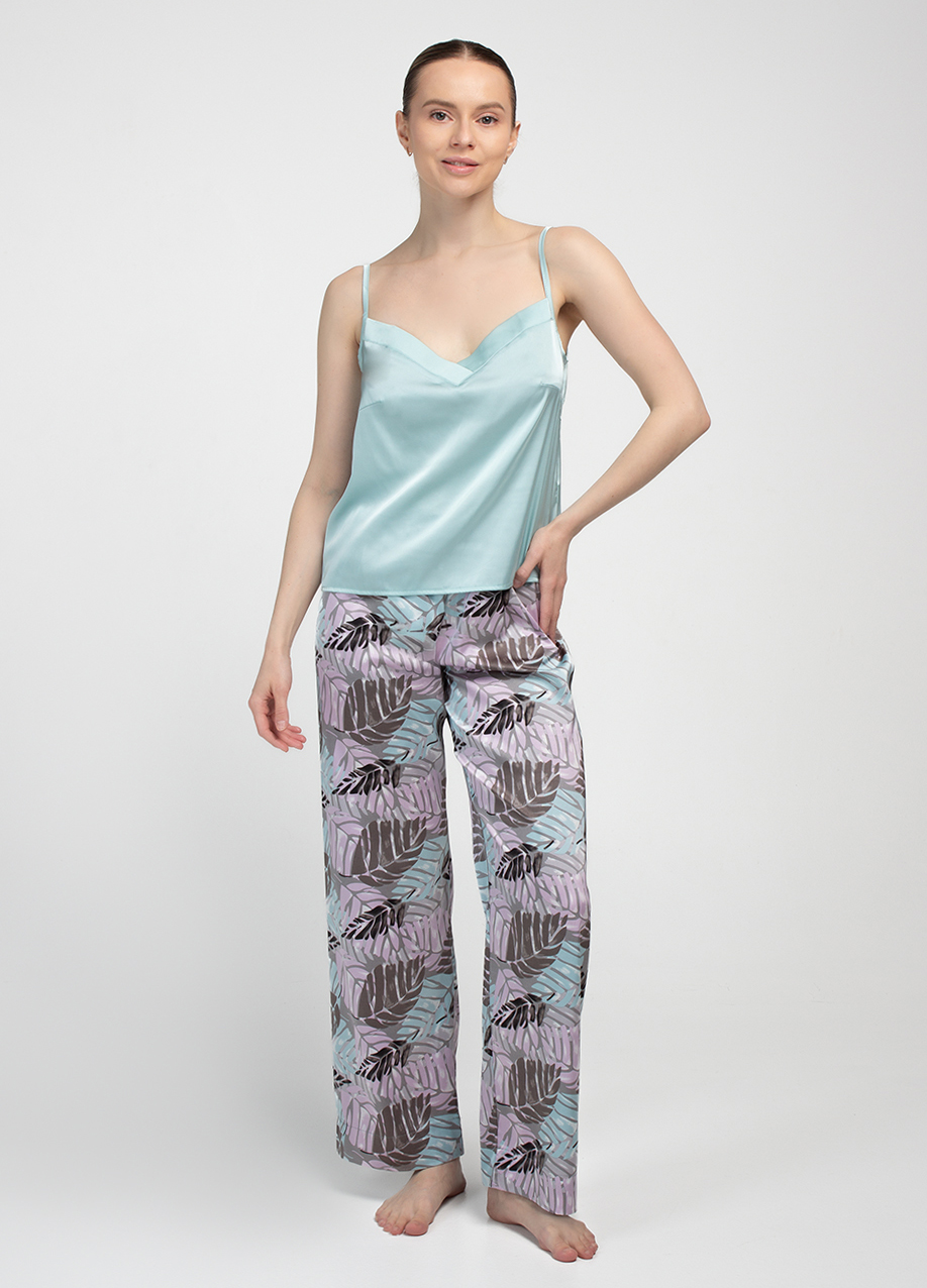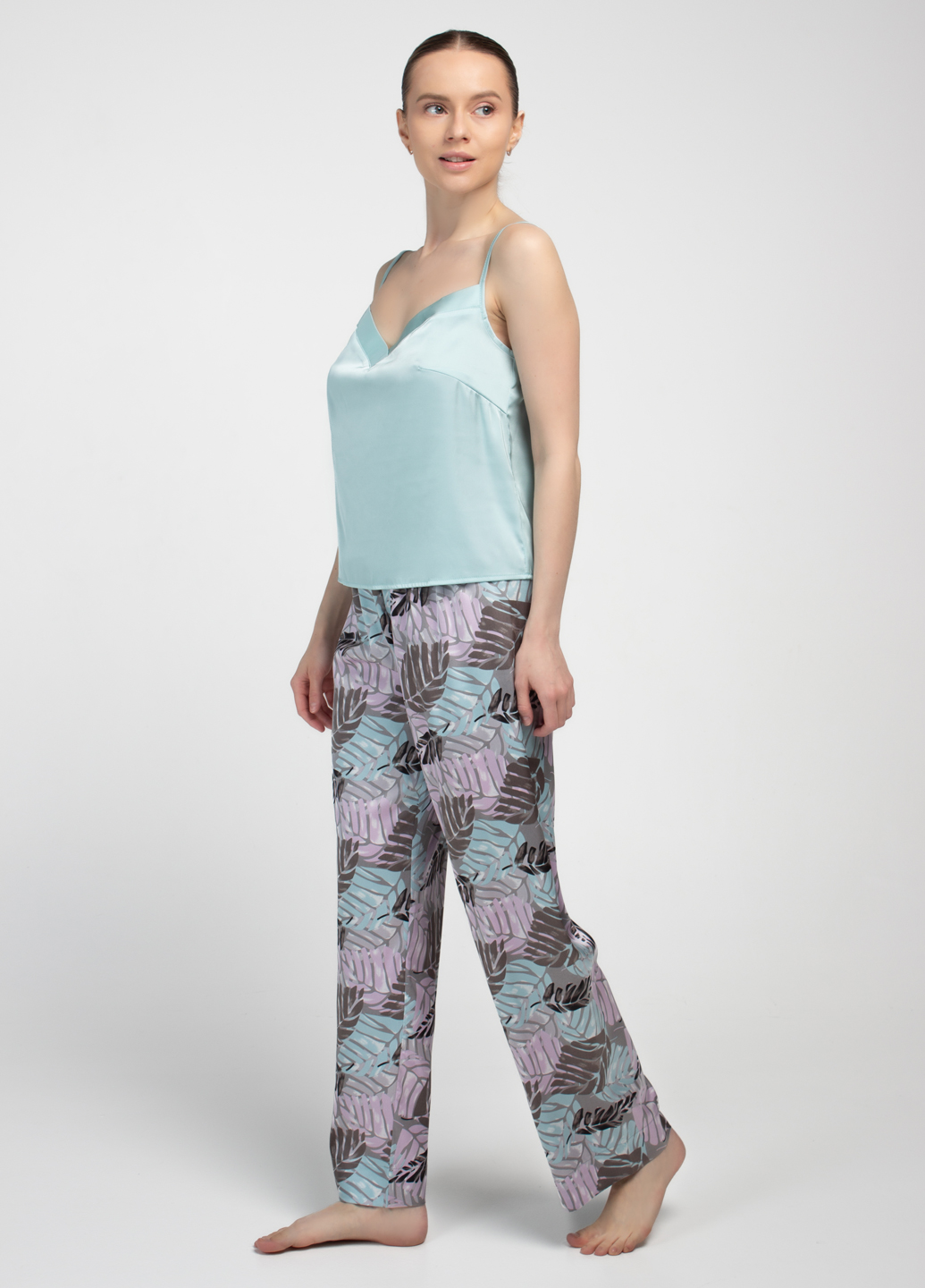 Довга піжама з шовку LEAFSONG 5010/050 gum leaf/mokko print (зелений/коричневий)
