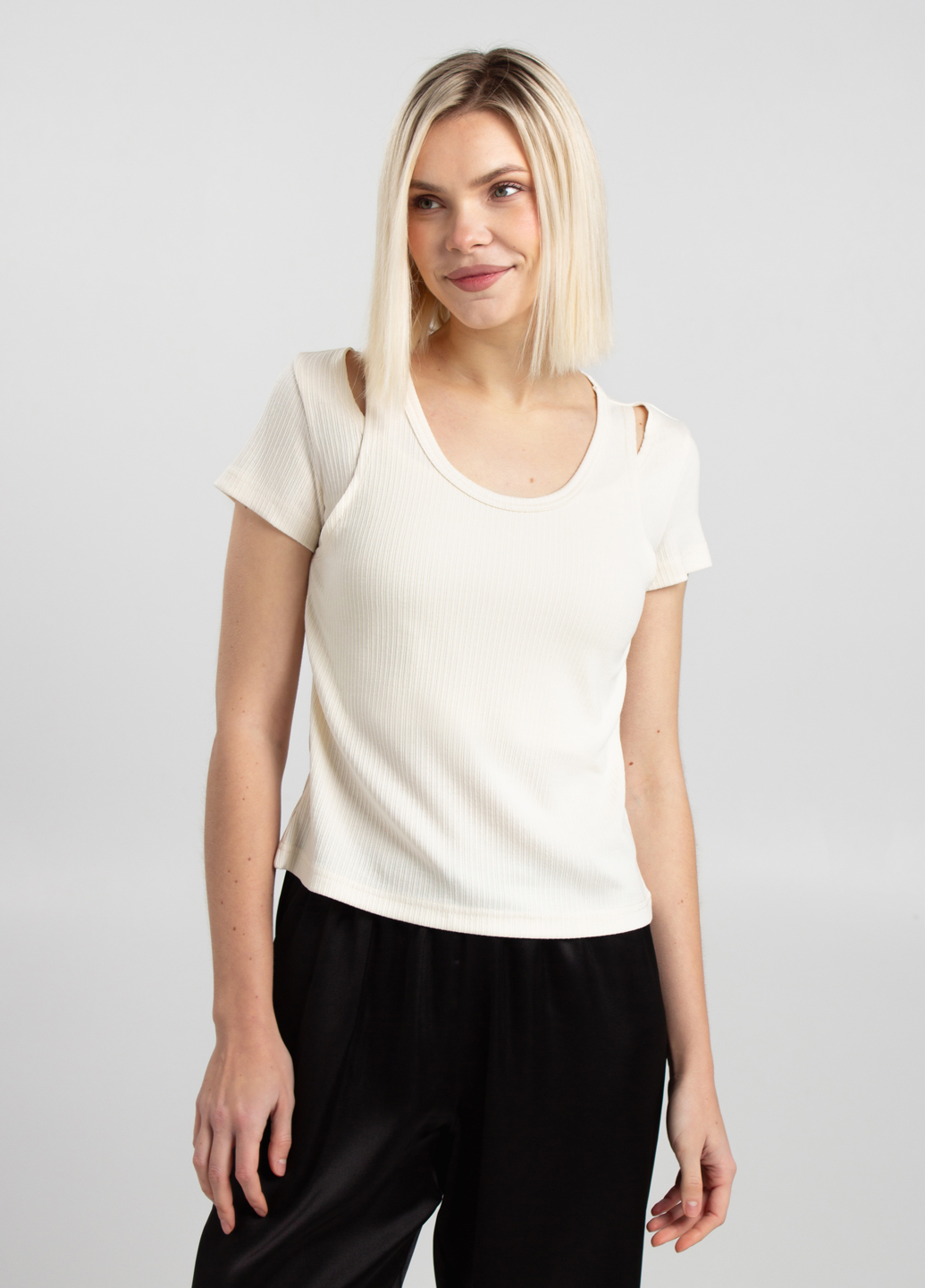 Футболка з імітацією майки LIGHT ESSENTIAL 4823/320 light cream (молочний)