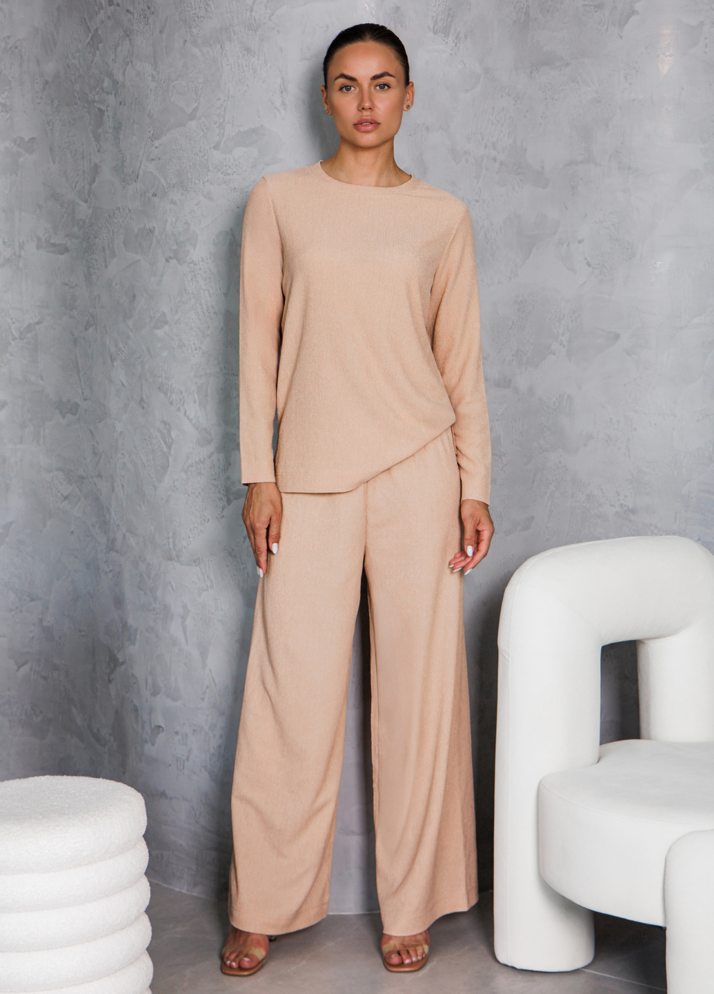 Комплект лонгслів та штани з жатки RUMPLE RICH 5342/260 light beige (бежевий)