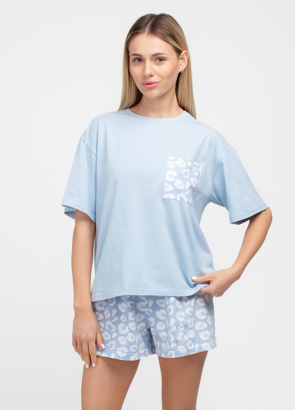 Піжама з леопардовим принтом COTTON BLOOM 6132/010 (блакитний)