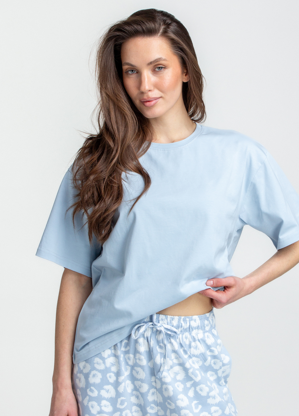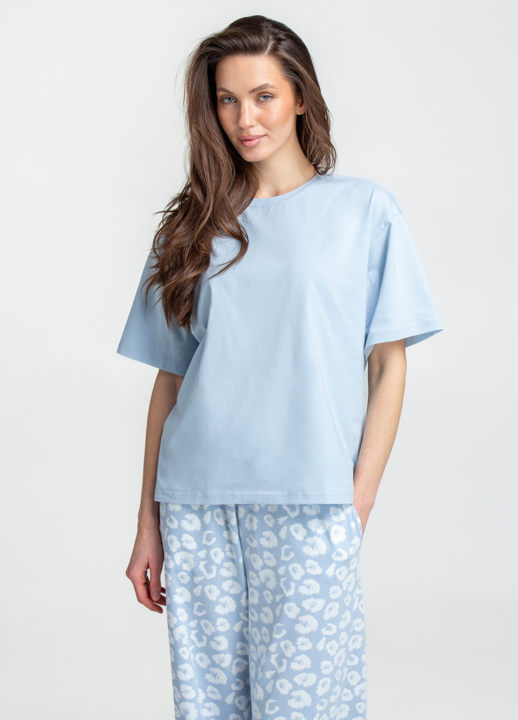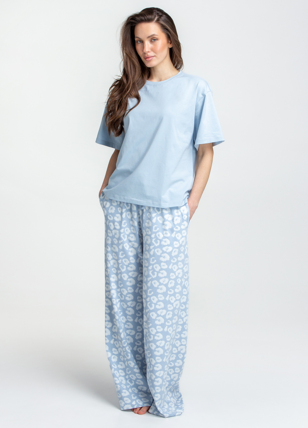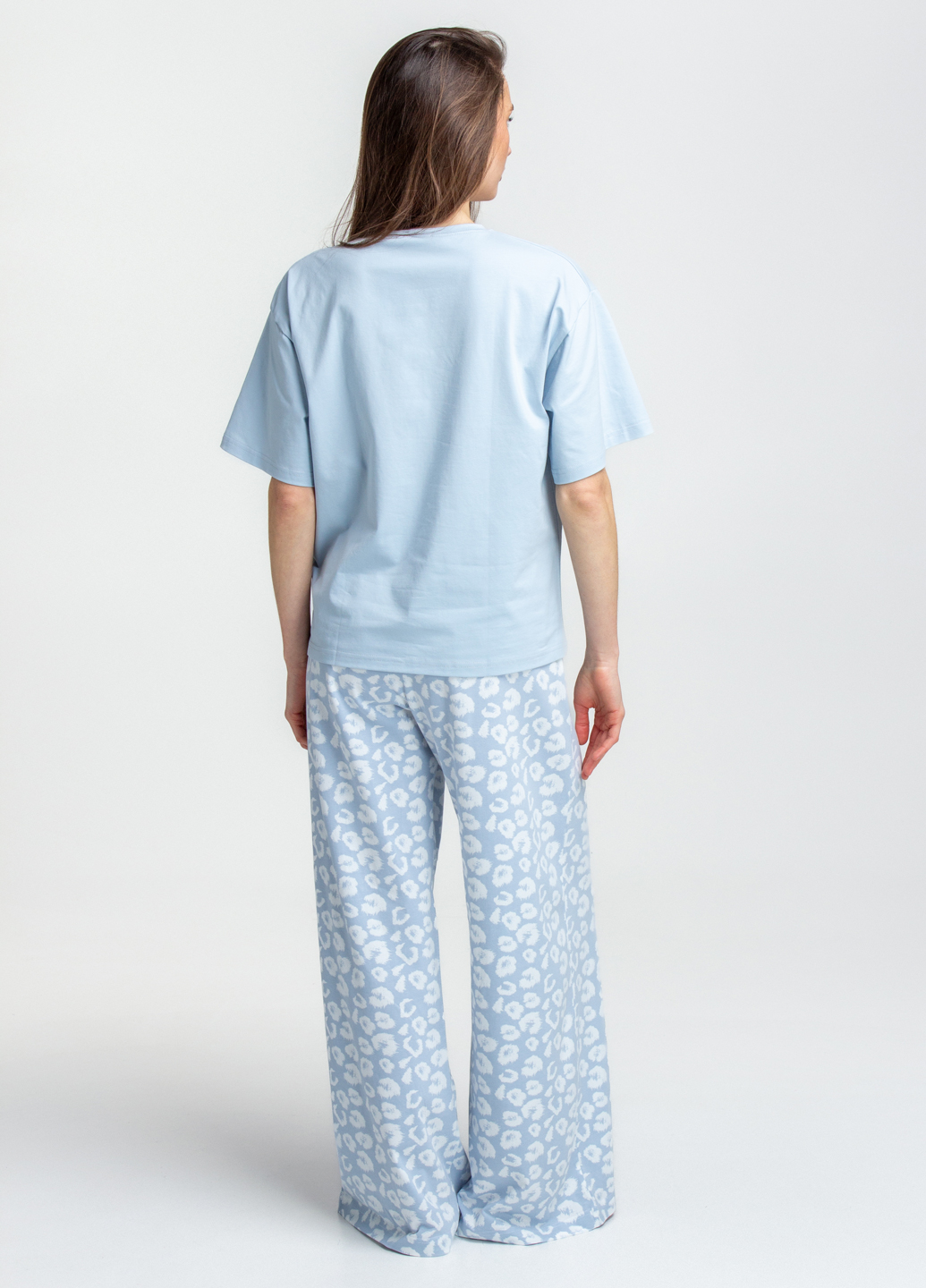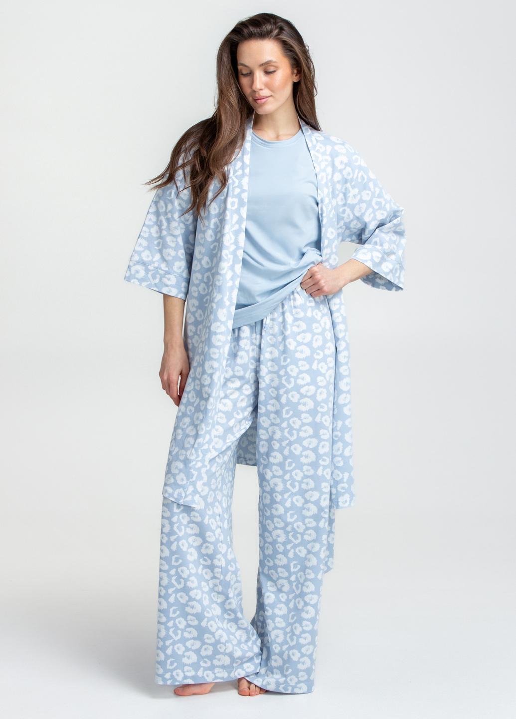 Пижама длинная с леопардовым принтом COTTON BLOOM 5127/010 (голубой)