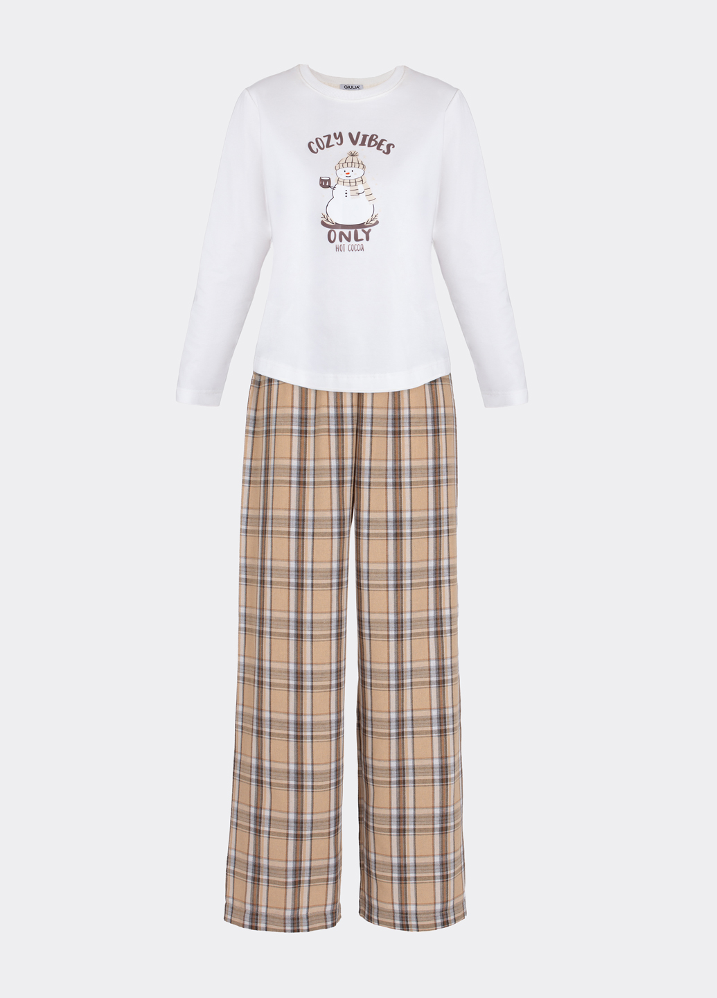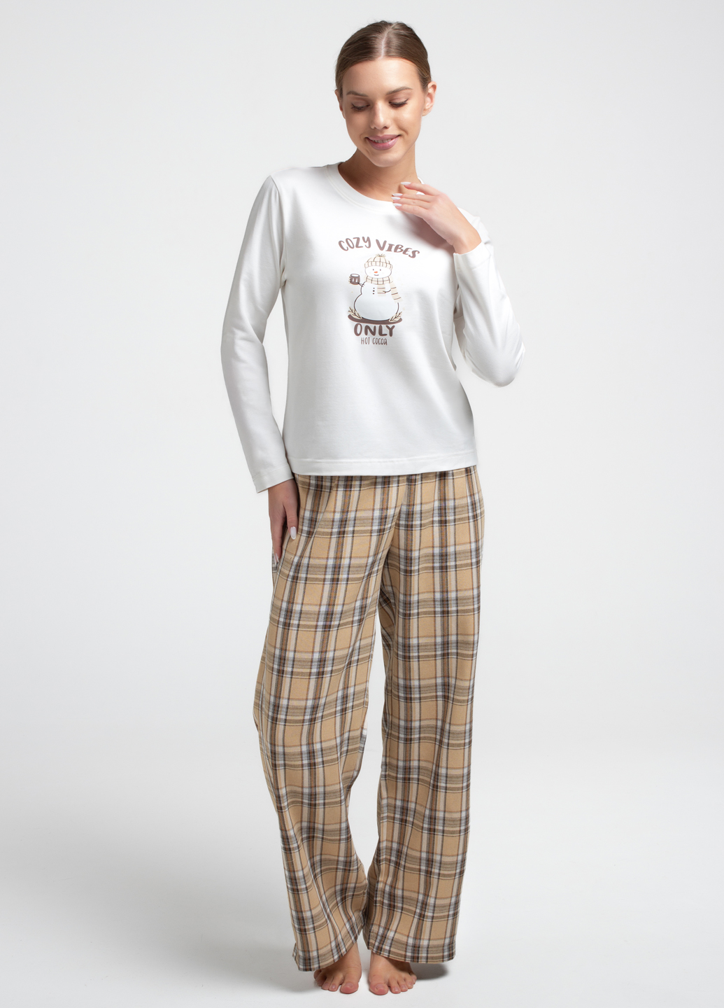 Пижамный комплект EMBERLIGHT 5344/300 milk print/caramel check (белый/коричневый)