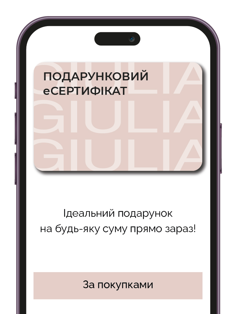 В-третьих, подарочная карта – это еще и отличный подарок для женщины, которая ценит время и хочет самостоятельно решать, когда использовать свое вознаграждение. Помните, что подарочный сертификат, приобретенный в нашем магазине, можно использовать в офлайн магазинах сети Giulia в течение одного года с момента покупки.