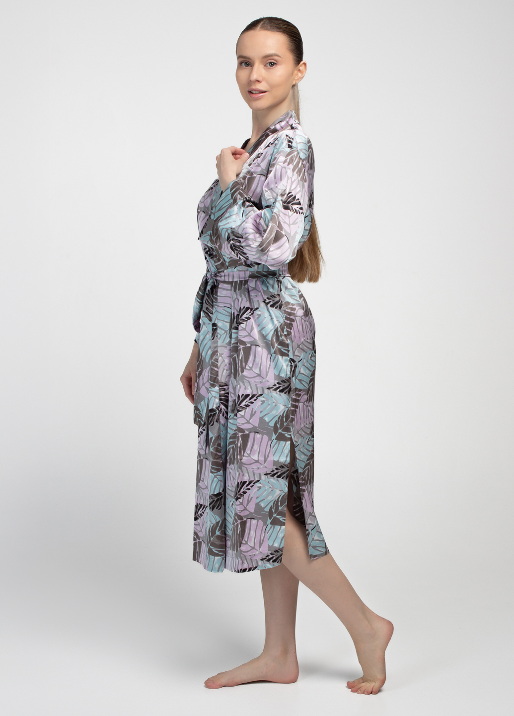 Шелковый халат LEAFSONG 7338/050 mokko print (коричневый)