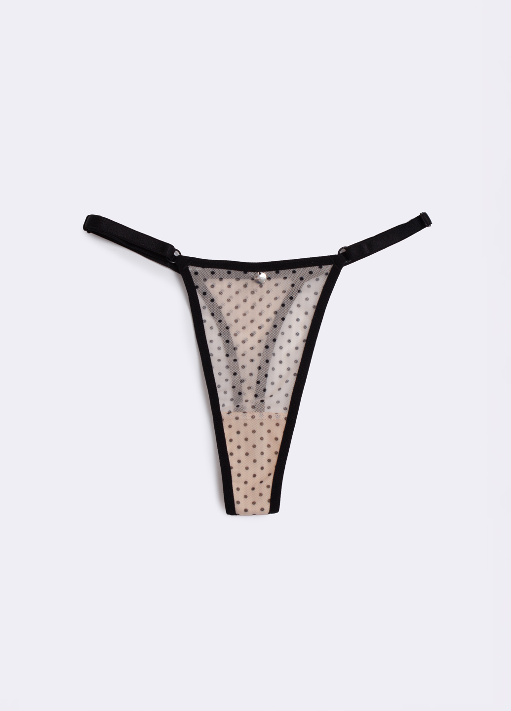 Труси танга из сетки на тесьме Glam 2116/40 beige dots (бежевый)