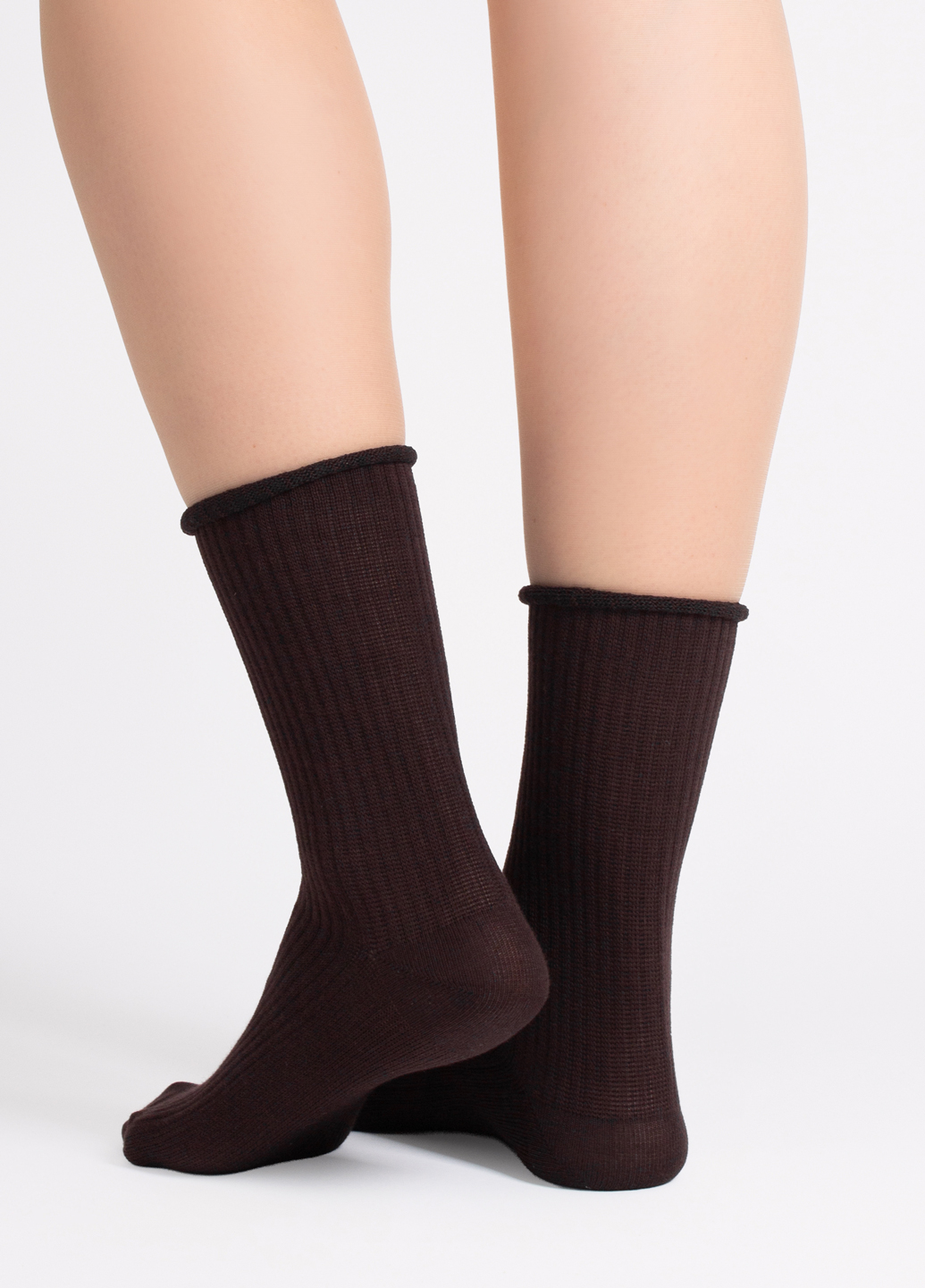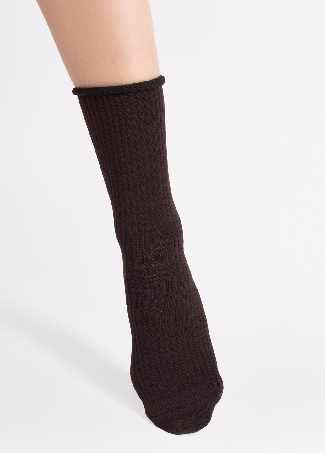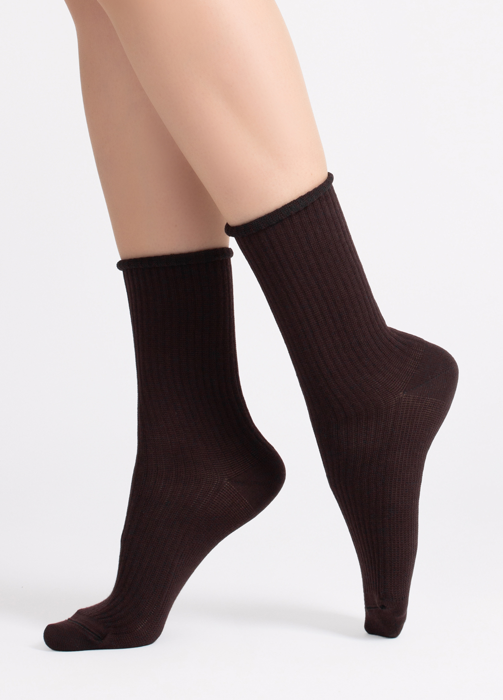 Женские высокие носки WS4 RIB chocolate (коричневый)