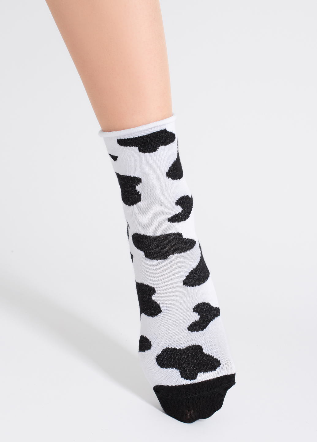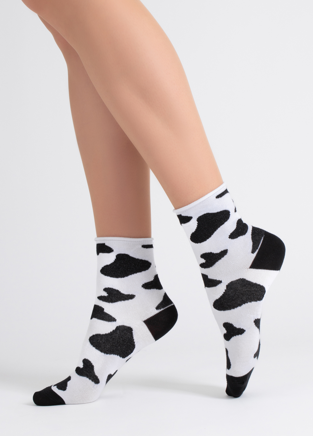 Шкарпетки з принтом корови WS2 FASHION 2505 black/white (чорний/білий)